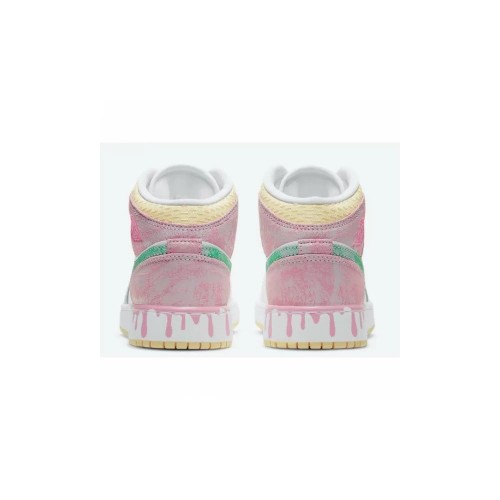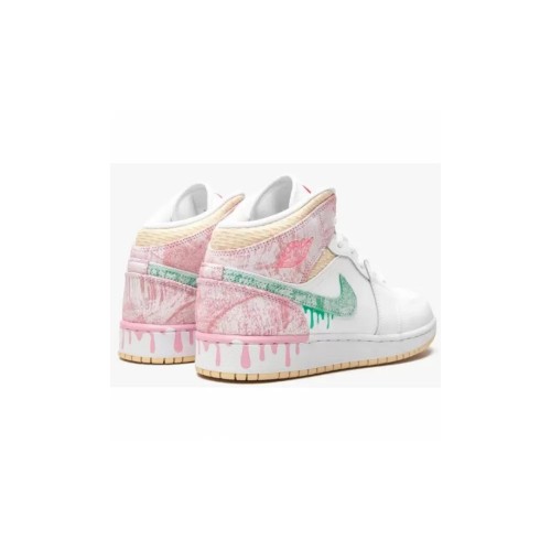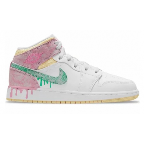 Кроссовки Nike Air Jordan 1 Mid GS Paint Drip белые с розовым