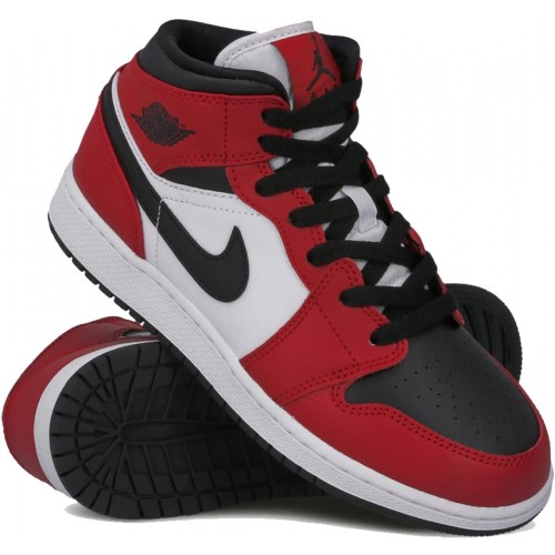 Кроссовки Nike Air Jordan 1 Mid Chicago Black Red красные с белым
